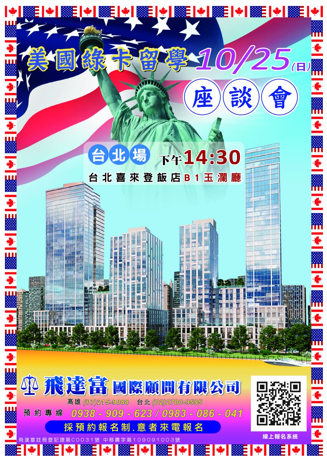 2025.10.19 飛達富 台北場君悅 美國綠卡留學座談會 立即預約,名額有限!