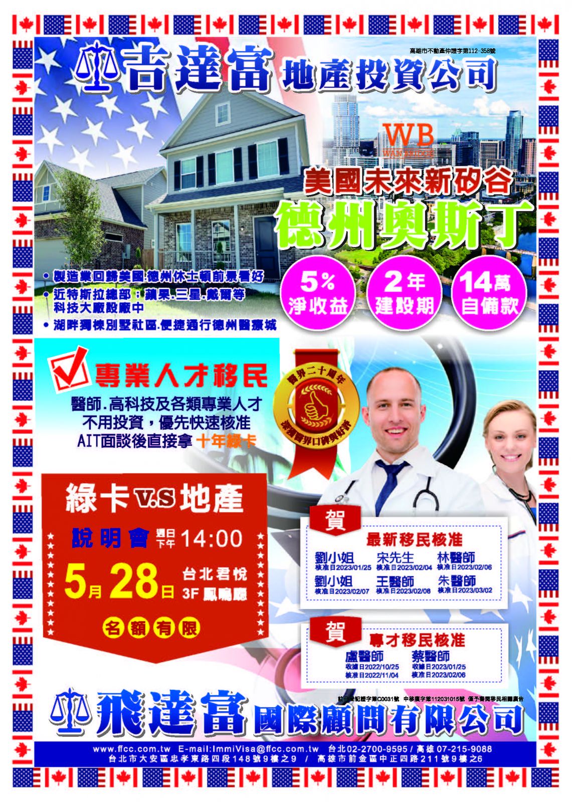 2023.05.28 飛達富 台北場君悅酒店 美國綠卡留學座談會 立即預約,名額有限!!