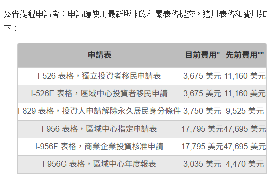 週二(11月18日),美國移民局(USCIS)發布公告,對職業移民EB-5綠卡簽證的相關費用做了說明,把收取的費用分為「目前費用」(Current Fee)和「先前費用」(Previous Fee),並明確了不同繳費金額。